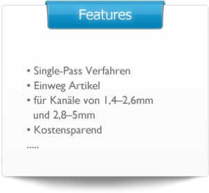 Durch einmaliges Durchziehen der Abstreifelemente sind die Reinigungs- und Sterilisationsverfahren gegenüber traditionellen Verfahren mit Bürsten weniger aufwendig und somit zeitsparend.